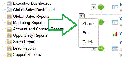 Hovering over the report folder name will display the menu for making report changes. It's here you will find the share button to grant access.